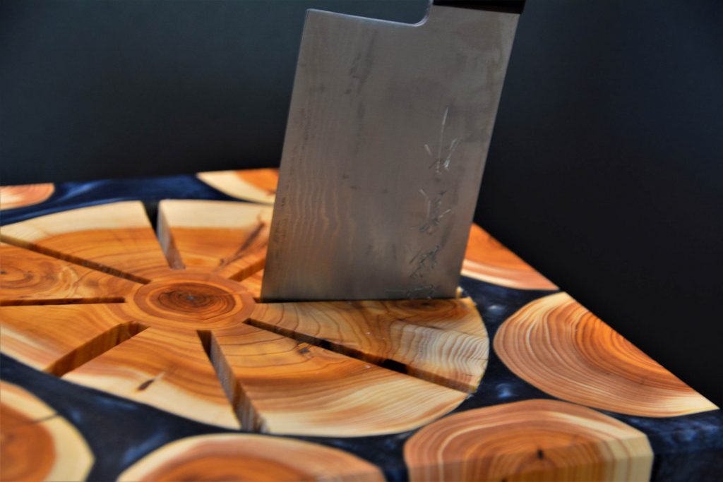 Messerblock aus massiv Eibe mit Kunstharz ausmodelliert